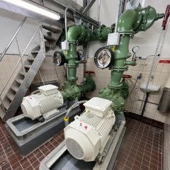 Onder de bovenbouw en naast de natte kelder onder de grond, zit de droge kelder. In de droge kelder staan de vuilwaterpompen en het leidingwerk. Er staan nu nieuwe vuilwaterpompen en elektromotoren in. Ook is het leidingwerk nieuw.