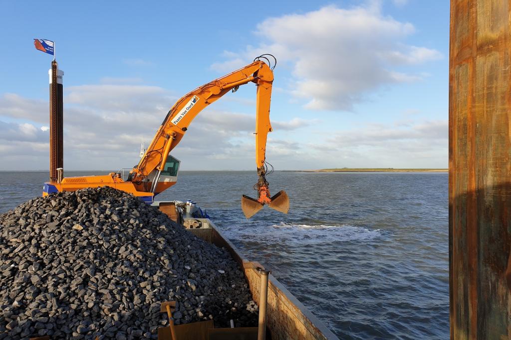 Rijkswaterstaat gebruikt al tientallen jaren staalslakken en breuksteen voor het bestorten van de vooroevers van de dijken en havendammen in Zeeland (foto: Rijkswaterstaat).