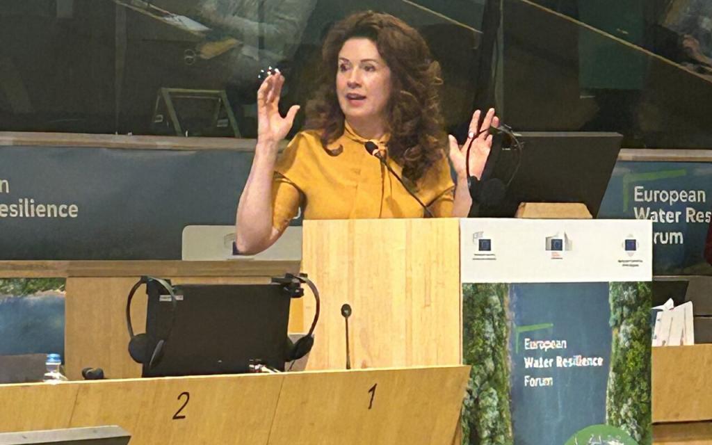 Op het Water Resilience Forum in Brussel riep president Kata Tütt?È van het Europese Committee of the Regions alle lokale besturen op meer werk te maken van het bestrijden van waterschaarste (foto: LinkedIn/V. Manfredi).
