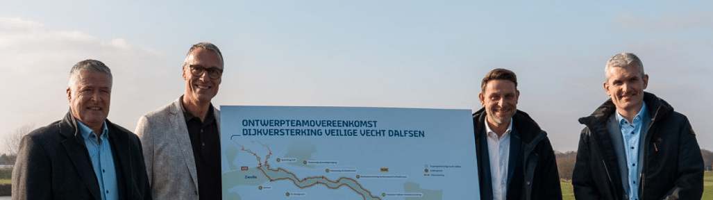 Dagelijks bestuurslid Hans Wijnen van het waterschap: “Met Vechtdijkenensemble kiezen we voor een partner die met ons vooruitkijkt. Waar wij het voorlopige ontwerp hebben gemaakt, bouwen zij hier met ons op voort. Door het toevoegen van hun uitvoeringsexpertise en integrale omgevingsgerichte aanpak bereiden wij gezamenlijk de dijkversterking verder voor. Dat past bij hoe we dit project willen realiseren: zorgvuldig, toekomstbestendig en samen met de mensen die hier wonen en werken.”