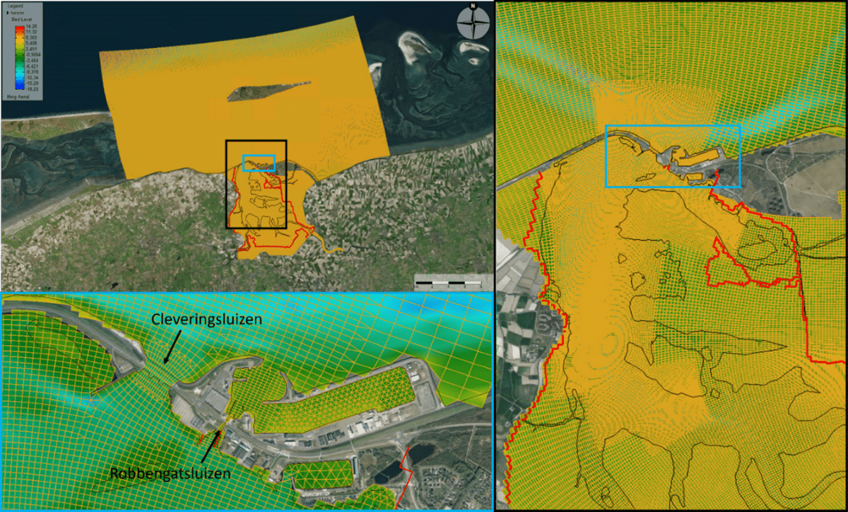 Om kennis te vergaren van het systeem onder zulke omstandigheden is het wenselijk om een chloridemeetnet op te zetten. Om dit meetnet te kunnen ontwerpen is een 3D zoet-zout model van het Lauwersmeer met de D-Flow FM en D-Real Time Control modules van de D-HYDRO Suite* opgezet. Hierin zijn de Cleveringsluizen in de D-Real Time Control module meegenomen waardoor het openen van de sluizen afhankelijk is van het verval tussen de Waddenzee en het Lauwersmeer. Sanne van der Heijden, Jos van der Baan en Rufus Velhorst van Arcadis waren verantwoordelijk voor de modellering.