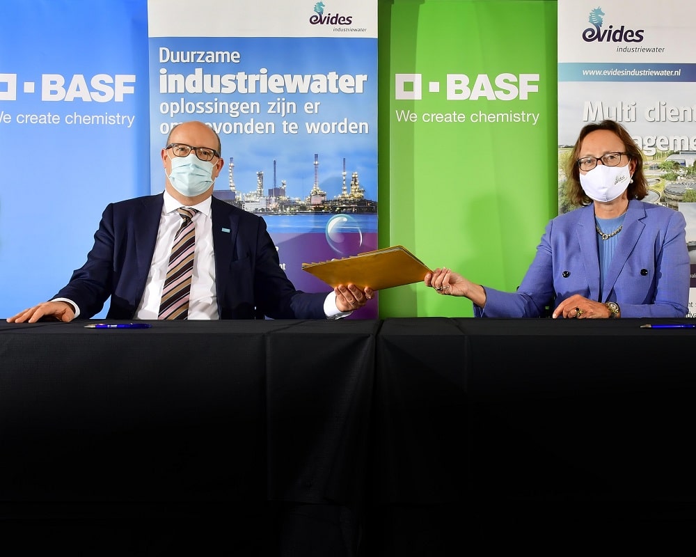 Maandag 28 september tekenden Jan Remeysen, CEO van BASF Antwerpen en Annette Ottolini, algemeen directeur van Evides Waterbedrijf een overeenkomst voor de levering van industriewater. Jan Remeysen, CEO BASF: “We werken al jaren naar tevredenheid samen. Evides levert al 10 jaar proceswater en een deel van het gedemineraliseerd water (‘demiwater’). Dat geeft ons vertrouwen voor deze nieuwe langdurige samenwerking waarbij Evides eveneens een nieuwe demiwaterinstallatie zal bouwen op de site in Antwerpen.”