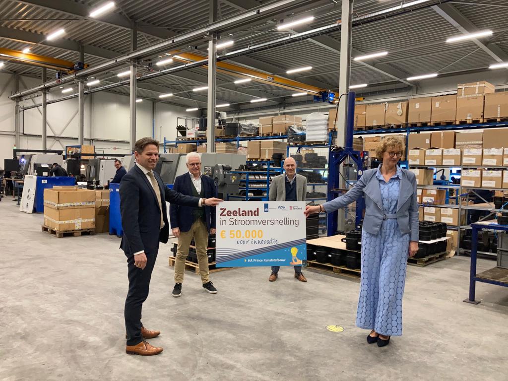 Een consortium van zes partijen onderzoekt in de eerste helft van 2021 hoe Biobased verpakkingen het waterleidingsysteem kunnen verduurzamen. Vandaag overhandigde de Zeeuwse gedeputeerde Jo-Annes de Bat symbolisch de subsidiebeschikking aan Kathleen Metz, directeur van projectleider Prince Kunststof Infra in het kader van het investeringsprogramma ‘Zeeland in Stroomversnelling’.