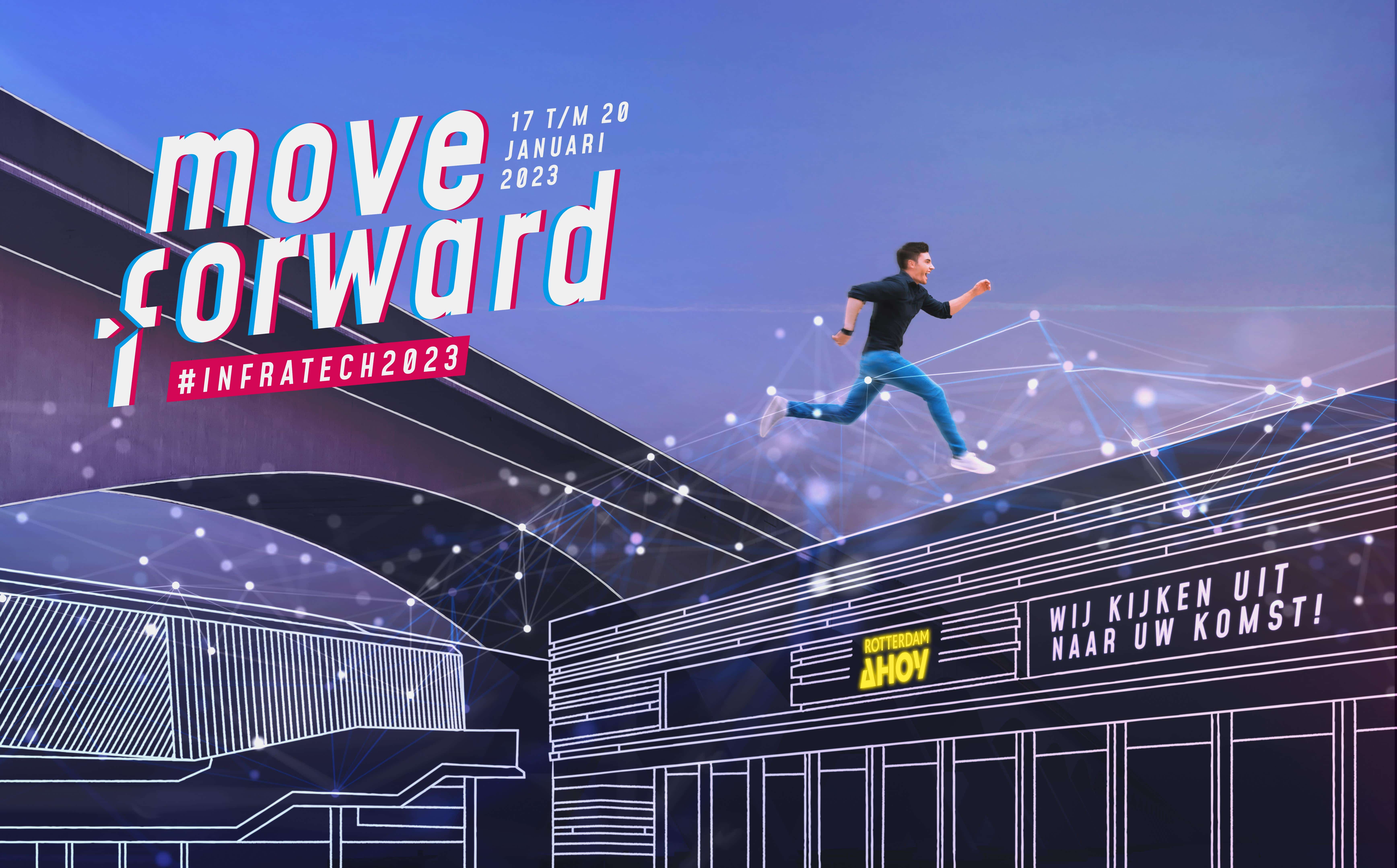 InfraTech gaat in 2023 door met waar het als kennisplatform al 14 edities voor staat: de hele infrasector met elkaar in contact brengen. Onder het thema ‘Move Forward’ daagt InfraTech de keten uit om kennis te maken, kennis te delen, elkaar te inspireren, samen te innoveren en trends en ontwikkelingen te vertalen naar kansen voor de sector. Want samen heeft de sector wat er nodig is om concrete stappen vooruit te zetten; It’s time to Move Forward!