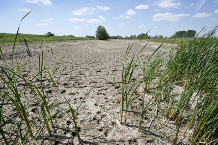 Deze drooggevallen poel langs de IJssel in Gelderland (Baak) siert de omslag van het nieuwe Deltaprogramma. De droogte is dan ook een van de hoofdthema’s (foto: Deltaprogramma 2020 / Henri Cormont).