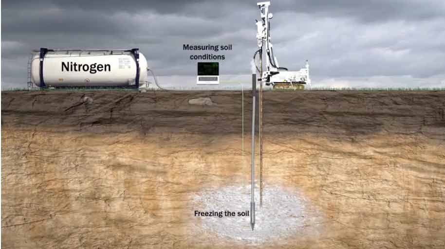 De Groningse grond wordt op drie locaties over een gebied van ongeveer 2 x 2 meter en een diepte van maximaal 20 m met stikstof bevroren. Het bevriezen is noodzakelijk om de bodemmonsters naar het geotechnisch laboratorium in Delft te vervoeren. Korff: “In het laboratorium ontdooien we de monsters gecontroleerd en bootsen we een aardbeving na door de monsters cyclisch te belasten. Op deze manier kunnen we zien hoe het Groningse zand zich gedraagt en wanneer er verweking optreedt.