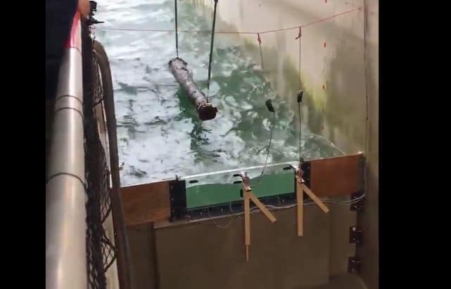 Een zes meter lange boomstam van 800 kilo met een doorsnede van 40 centimeter beukt in de Deltagoot tegen een waterkering die is opgebouwd uit folie en glas. De boom wordt voortgestuwd door flinke golven. Uiteindelijk moet de kering een keer bezwijken zodat Deltares kan vaststellen hoe sterk het materiaal is. Omstanders keken 23 januari in de Deltagoot vol spanning naar een van de proeven in de Deltagoot.
