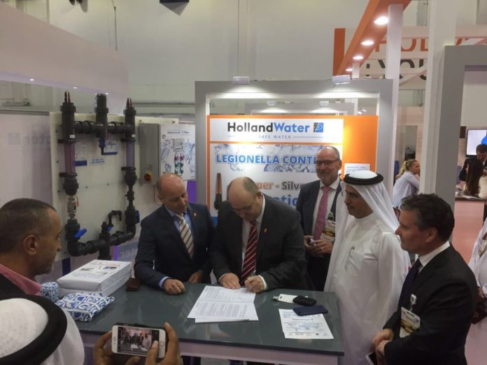 Holland Water uit Driebergen, marktleider op het gebied van Legionellabestrijding, heeft 23 oktober een samenwerkingsovereenkomst gesloten met Culligan Middle East FZE, specialist in waterbehandelingsapparatuur in de VAE-regio. De ondertekening vond plaats in Dubai, waar Holland Water aanwezig is in het Holland Paviljoen op de Wetex-beurs. Door het sluiten van de overeenkomst is Culligan nu de vertegenwoordiger van Holland Water in de regio.
