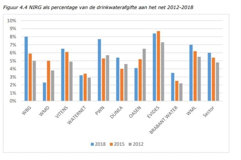 Lek- en spuiverliezen geven een beeld van de kwaliteit van het distributienet. Volgens het ILT is sen goede indicatie van waterverlies in het distributienet het zogenoemde ‘niet in rekening gebracht gebruik’ (NIRG). Dit is het verschil tussen de drinkwaterafgifte aan het net en het aan de klanten gefactureerde drinkwatergebruik. NIRG is dus in feite verlies van drinkwater. Oorzaken daarvan zijn verliezen door lekkages, door het doorspoelen van leidingen en schoonmaakwerkzaamheden (spuien), meetverschillen, afname uit brandkranen en illegale afname.