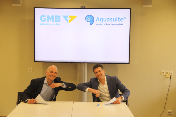 Royal HaskoningDHV en GMB Services slaan de handen ineen om waterschappen te helpen hun processen en bedrijfsvoering te optimaliseren. Daartoe ondertekenden Royal HaskoningDHV directeur Aquasuite Sander Zweers en GMB Services directeur Niels de Kleijn de formele samenwerkingsovereenkomst. De overeenkomst beschrijft een gezamenlijk pakket aan diensten, om waterschappen te helpen om diverse processen binnen de waterketen te optimaliseren. Hiermee is het startsein gegeven voor een meerjarige samenwerking.