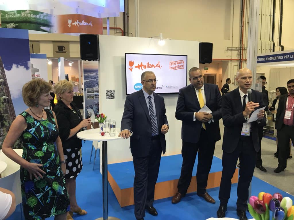 In het Nederlandse paviljoen presenteren Aquatech Global Events, Berghof Membrane Technology, Deltares, Duvalco, Envaqua, Royal Eijkelkamp, Urban Farming Partners, Paques, ReCirc Singapore, Royal HaskoningDHV, City of Rotterdam, Villagepump, Water Alliance en het Netherlands Water Partnership (NWP) zich. Arcadis, CirTec, DMT Environment Technology, PWNT, Optiqua en Nijhuis Industries hebben een eigen stand op de waterexpo.
