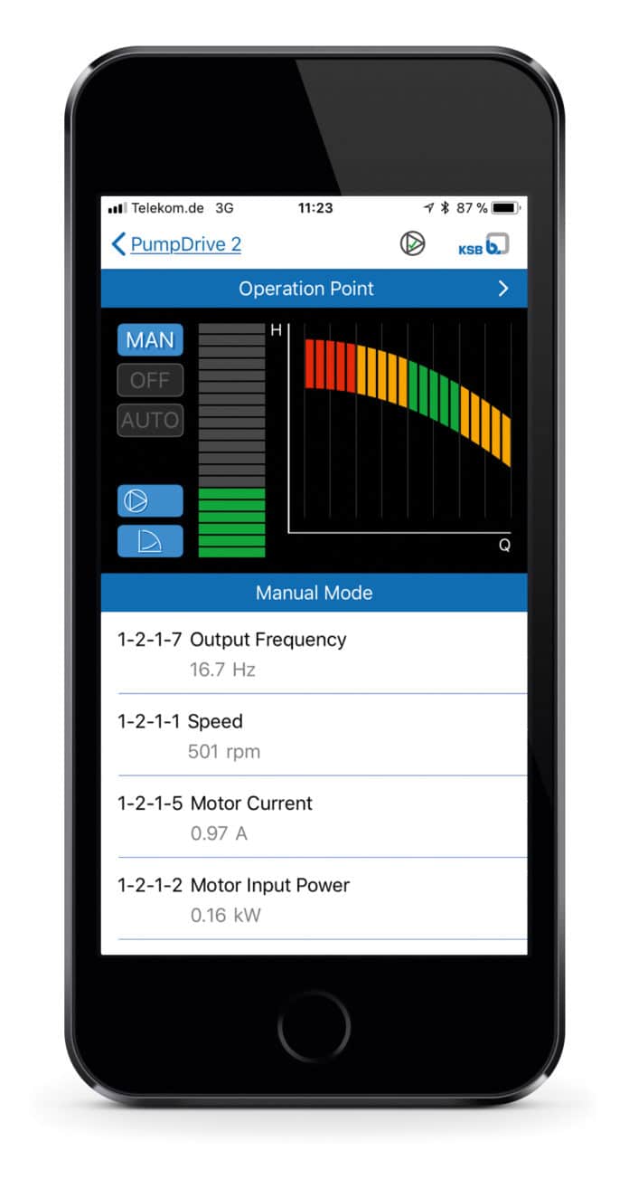 KSB heeft een nieuwe app ontwikkeld: KSB FlowManager. Met de nieuwe app kunnen de frequentieregelaar PumpDrive 2 en PumpDrive 2 Eco worden bediend en ingesteld. Bovendien kan met de app het constante toerental van de MyFlowDrive aandrijving op het optimale bedrijfspunt worden afgesteld.