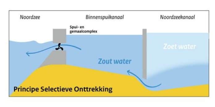 Aannemersconsortium OpenIJ is druk bezig met de bouw van de zeesluis bij IJmuiden van 70 m breed, 500 m lang en 18 m diep. Door de enorme omvang van de sluis komt er bij het schutten straks 10.000 ton zout in het Noordzeekanaal en dat is meer dan nu het geval is. Deze verzilting van het kanaal is nadelig voor de natuur, land- en tuinbouw en de drinkwatervoorziening in de omgeving van het Noordzeekanaal.