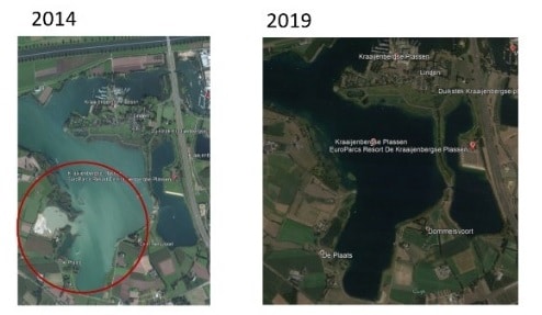 Satellietbeelden tonen aan dat sommige plassen waar granuliet is gestort vertroebelen. Dat meldt Gert-Jan van Engelen van het Burgercollectief Dreumelse Waard. “Wij weten niet of het schadelijk is voor de natuurontwikkeling, maar het is duidelijk dat de overheid dit niet goed heeft onderzocht. Het voorzorgsbeginsel is ten koste gegaan van bedrijven die een probleem met hun granulietafval hadden.”