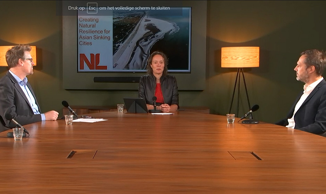 Gualbert Oude Essink van Deltares ging in op de modellen van zijn instituten waarmee het grondwater en de bodemdaling in de Aziatische steden kan worden gemonitord. Hij benadrukte de noodzaak voor deze steden om een strategie te ontwikkelen waarbij vooral herinfiltratie een belangrijk element is om het grondwater op peil te kunnen houden. Reinier Oost van Sensar vertelde over de satellietdata die zijn bedrijf verzamelt voor het Vietnamese Ho Chi Minhstad. Weny Sihombinc van Witteveen+Bos vertelde over de slibdammen die lokale Indonesische gemeenschappen zelf bouwen langs de Javaanse kust bij Semarang. De dammen houden het slib vast uit het zeewater en op deze slibafzettingen kunnen weer mangrovebossen groeien.