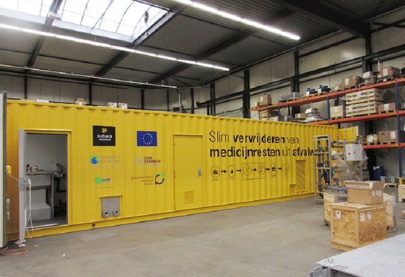 De drie partijen onderzoeken hoe de geïntegreerde ozon- en uv-behandeling voor de afbraak van medicijnresten, röntgencontrastvloeistoffen en resistente bacteriën kan zorgen. Hiervoor plaatsen ze een gele container met een filtratiestap, ozon- en uv-technologie en meetapparatuur bij het ziekenhuis in Winterswijk.