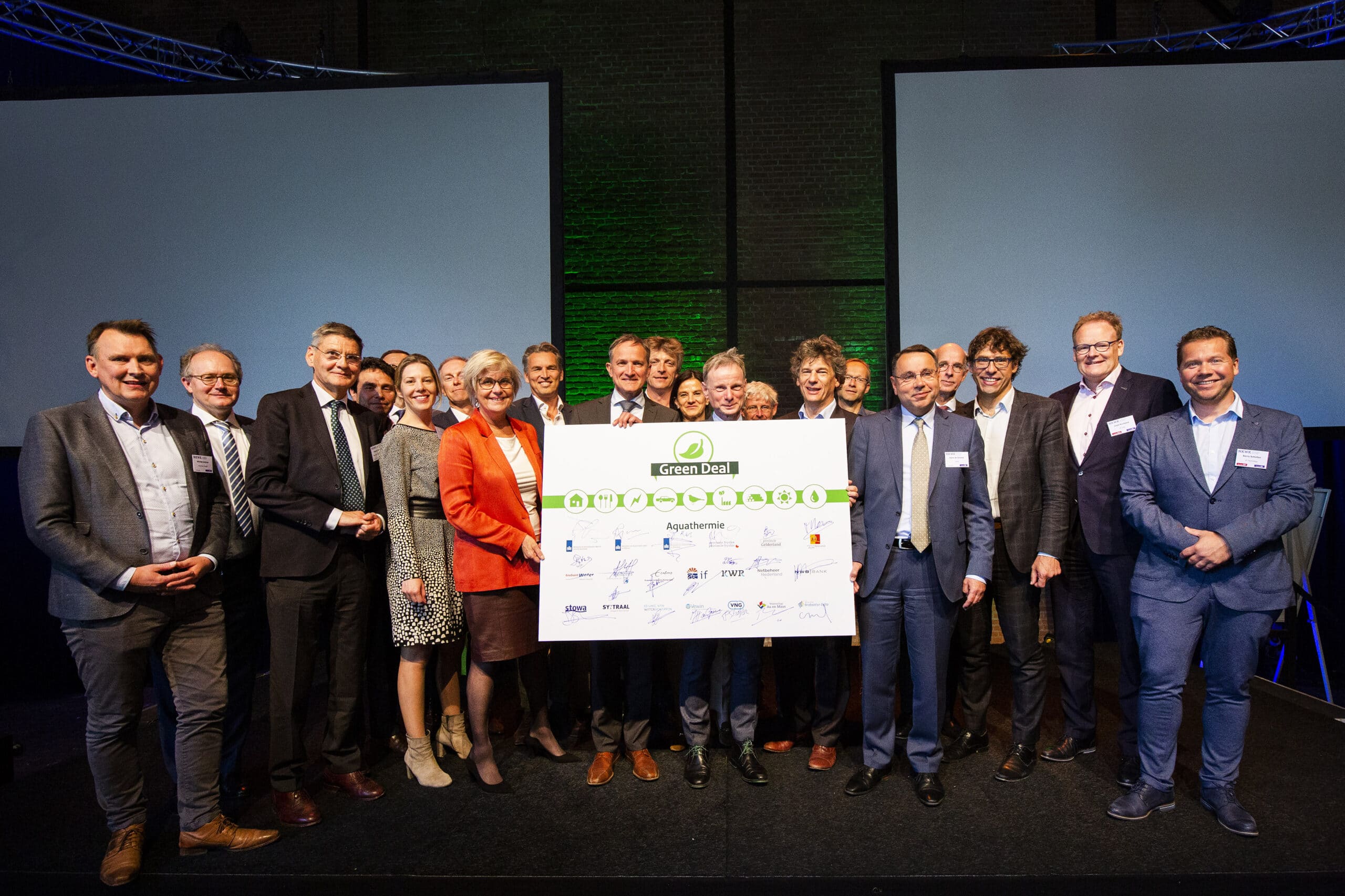 Het ministerie van Economische Zaken en Klimaat geeft het programma Aquathermie een duwtje in de rug met een bijdrage van 900.000 euro. Andere partijen dragen financieel of in natura bij aan het onderzoek. Aan de Green Deal hebben zich naast partijen ook partners verbonden die zich actief willen inzetten. Het initiatief wordt breed gedragen want er zijn in totaal zo’n veertig partijen betrokken.