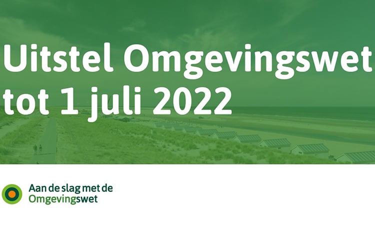De invoering van de Omgevingswet is uitgesteld tot 1 juli 2022. Dat meldde demissionair minister Kajsa Ollongren van Binnenlandse Zaken en Koninkrijksrelaties 26 mei in een brief aan de Eerste en Tweede Kamer. Het uitstel is nodig om het Digitaal Stelsel Omgevingswet (DSO) werkend en stabiel te krijgen. De waterschappen zijn zo goed als klaar voor de invoering, maar bij veel gemeenten moet er nog een hoop werk worden verzet.