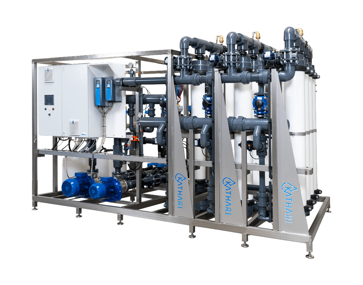 Met dit gegeven is Van der Ende Groep aan de ontwikkeltafel gaan zitten. Met de opgedane ervaring van de Poseidon natriumverwijderaar (winnaar van de GreenTech Sustainability Award 2018), is de destijds gebruikte deeltechniek nu doorontwikkeld tot de huidige Kathari ultrafiltratie. Kathari realiseert een log 4 reductie van virussen en schimmels en log 6 reductie van bacteriën, door toepassing van ultrafiltratie middels membraantechniek. Hierbij worden de virussen, bacteriën en schimmels fysiek gescheiden van het drainwater. Doordat ultrafiltratie een energie arme, economisch interessant (gunstige Capex) en duurzame techniek is, gebeurt dit op een kosten efficiënte wijze (lage Opex).