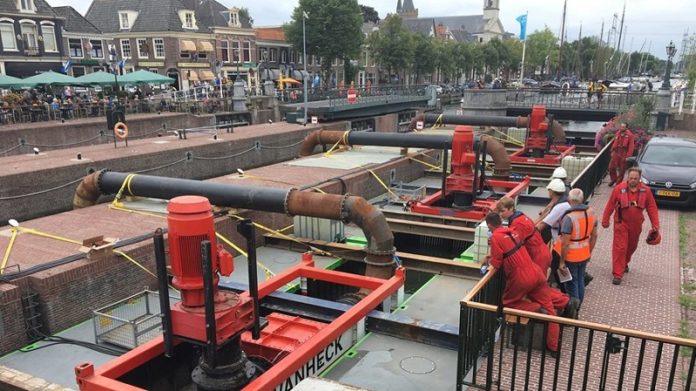 Van Heck heeft afgelopen week drie elektrisch gedreven VP800 pompen geplaatst in de Groote Zeesluis in Muiden. Het bedrijf deed dit in opdracht van Stichting Waternet. De noodpompen moeten ervoor zorgen dat het waterpeil in de Vecht hoog genoeg blijft om natuurschade in en rond het Naardermeer te voorkomen.