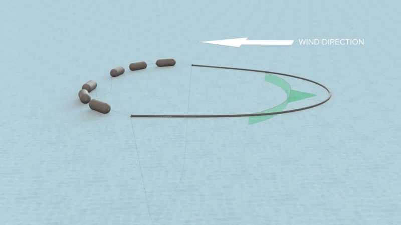 Eén van de ideeën om het systeem te versnellen, was een zeil erop aan te brengen, maar al snel was duidelijk dat de belastingen van een zeil tijdens een storm te groot zouden zijn: ongeveer vijf ton kracht voor elke meter zeil. Deze kracht zou ervoor zorgen dat het systeem omvalt. Als je dus kiest voor een zeil, betekent dat tegelijk dat er ingewikkelde structuren nodig zijn om het systeem rechtop te houden. Dat bracht het team op het idee om het zeil los te koppelen van de drijver en de zeilen vrij te laten drijven. Er worden nu gigantische opblaasbare boeien aan de voorkant van het systeem verbonden, die het naar voren zullen trekken, voortgestuwd door de kracht van de wind.
