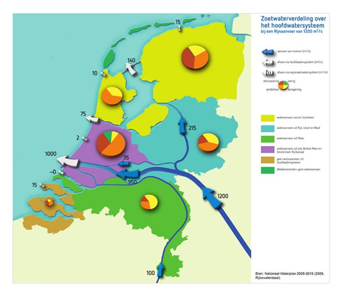 “Op dit moment kunnen we het zoute water met onze maatregelen goed tegendruk bieden, maar het is natuurlijk de vraag hoe lang deze situatie zal doorzetten.” Dat zei voorzitter Hans de Vries van de Landelijke Coördinatiecommissie Waterverdeling (LCW) op 7 augustus bij BNR Radio. De inzet van de Kleinschalige Wateraanvoervoorziening (KWA) alléén is niet voldoende.
